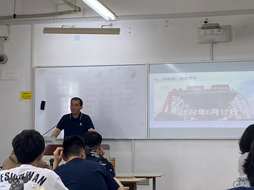 谢部长以今年五一期间“福建号”航空母舰的海试和习近平总书记出访欧洲为引,以船舶制造的质量管控为主线,融合造船工程的质量案例,在课堂上深入浅出的介绍了我国造船工业的高质量发展历程和船舰建造中的质量管控技术,在生动活泼的氛围中,强化了同学们对材料检验和质量管控的认知及其在工程上的重要意义,还以最近发生的梅大高速塌方事故为课下作业,要求同学们关注后续的事故原因调查。