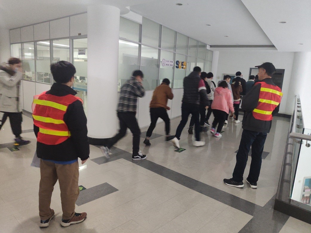 为使广大师生树立“闻警即动”的逃生意识,掌握应急疏散的程序和方法,切实提高师生员工在火灾等紧急情况下的自救互救能力,加强员工的安全防范意识,材料工程公司于11月27日在实训三号楼开展逃生疏散演练。