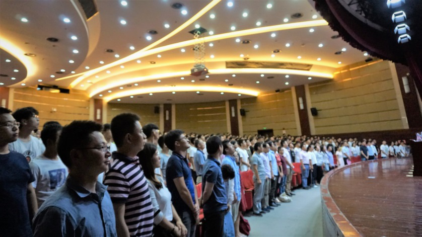 梅元媛对于书记的精彩党课进行了总结,她提到,“漫江碧透,百舸争流。鹰击长空,鱼翔浅底,万类霜天竞自由。”同学们应像于书记和周经理提到的那样,时刻牢记为国家谋复兴、为人民谋幸福的使命与担当,立鸿鹄之志,练就过硬本领,做新时代的弄潮儿。随后她宣布,材料工程公司2019级新生开学典礼圆满完成!