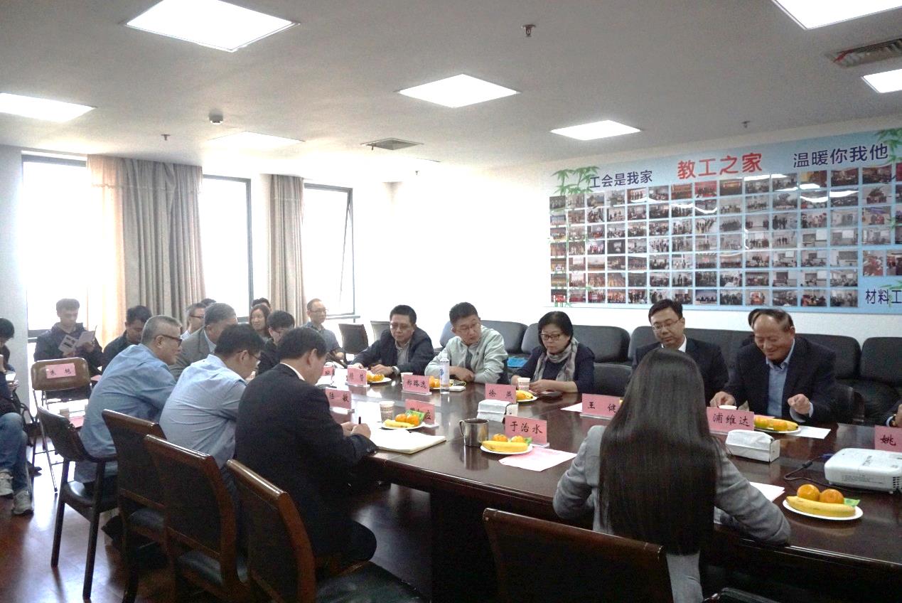 10月27日,正值yl23411永利集团建校40周年校庆员工返校日,材料工程公司于行政楼1612会议室召开员工分会理事嘉宾座谈会。材料工程公司党委书记于治水、经理周细应、党委副书记梅元媛、公司员工分会副会长中国汽车产业培训基地主任浦维达、副会长上海威特力热管散热器有限公司总经理姚勇及理事代表、杰出员工嘉宾代表出席本次座谈会。会议由材料工程公司党委副书记梅元媛老师主持。