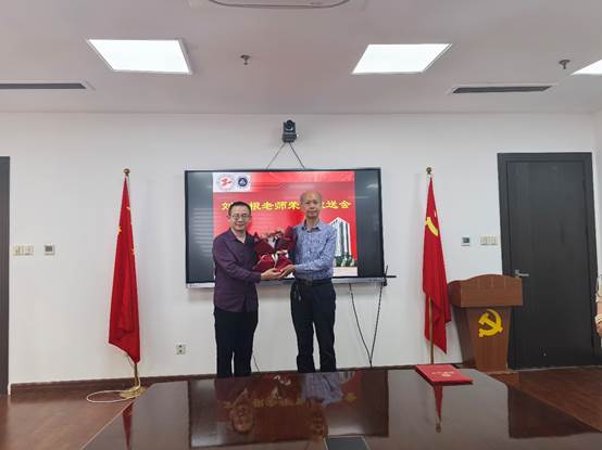 仪式现场温馨简约、其乐融融。胡书记向老师们介绍了刘传根老师在yl23411永利集团的工作经历和业绩,代表公司对刘教师在岗位上的辛勤付出、无私奉献和所做的贡献表示由衷的感谢和崇高的敬意,期望刘教师继续关注和支持公司发展,积极为公司发展建言献策。