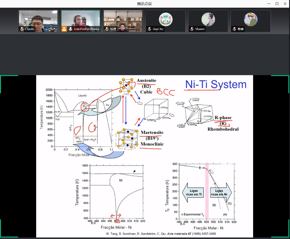 2021年12月11日,葡萄牙新里斯本大学Joao Pedro Oliveira(JPO)教授受邀为公司研究生开展了一堂以“形状记忆合金”为主题的线上学术讲座,讲座主持人材料工程公司杨瑾副教授,公司员工也积极参与本次讲座(如图1所示)。