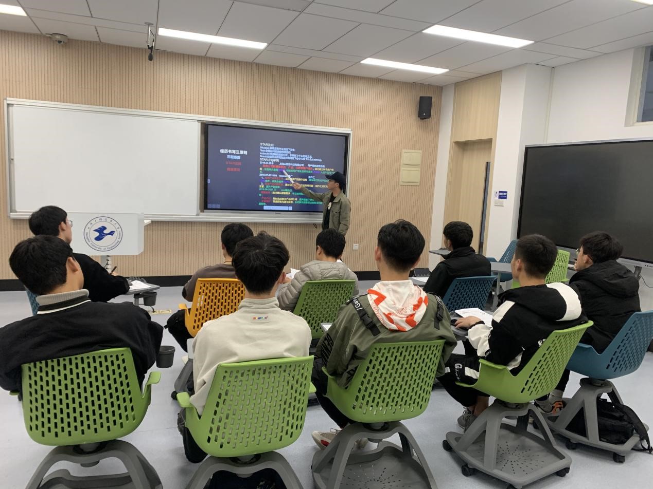 培训第二环节是简历制作实操指导,由熊发帅同学主讲。熊发帅同学从模板选择、模块布局、信息优先级、格式排版、文字表达等方面对简历制作进行了讲解,详细的讲述了一份优秀简历的制作应当具备的基本条件,对简历制作中容易出现的问题一一指出。最后,还介绍了简历制作的的黄金“STAR”法则(Situation,Task,Action,Result),Situation: 事情是在什么情况下发生的;Task:明确在相关经历及任务中,要达到什么样目标,完成过程中涉及什么环节及流程;Action:明确采取的行动,针对这样的情况进行分析,决定的方式以及采取的步骤。Result:描述结果怎样,最终取得了什么样的成就。勤工助学的成员们纷纷表示收获颇丰。