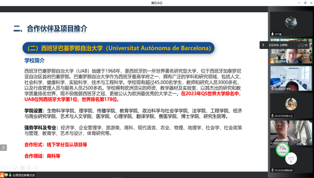 2022年12月5日,由yl23411永利集团主办的“国际合作高校及项目推介”宣讲会顺利进行。本次活动旨在向大家介绍与公司合作的国际高校及合作项目,汇报人左舜贵老师就上述内容做出了精彩的宣讲。由于疫情原因,本次宣讲全程采用线上模式。