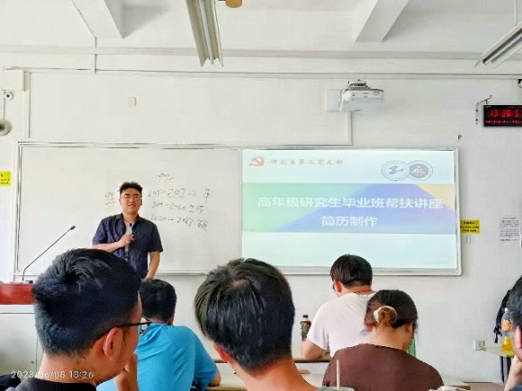 就业引航,圆梦发展。支部党员胡学帅同志曾任院员工会主席、班团支书,曾获华为杯研究生数学建模大赛全国三等奖、“互联网+”创新创业大赛上海市铜奖、红旗团支部书记标兵等荣誉,其求职就业先进事迹被“长三角热线”报道,已多次在公司内传授成功求职经验,同时一对一帮扶同届和下一届学弟学妹们介绍岗位、修改简历;支部党员马彩玉同志作为年级第一个签约的同学,站在讲台分享求职经历,从工作介绍、简历修改、面试指导到成功签约全程帮扶班级多名同学。